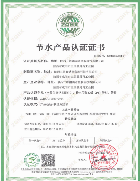 節(jié)水產(chǎn)品認(rèn)證證書(shū)